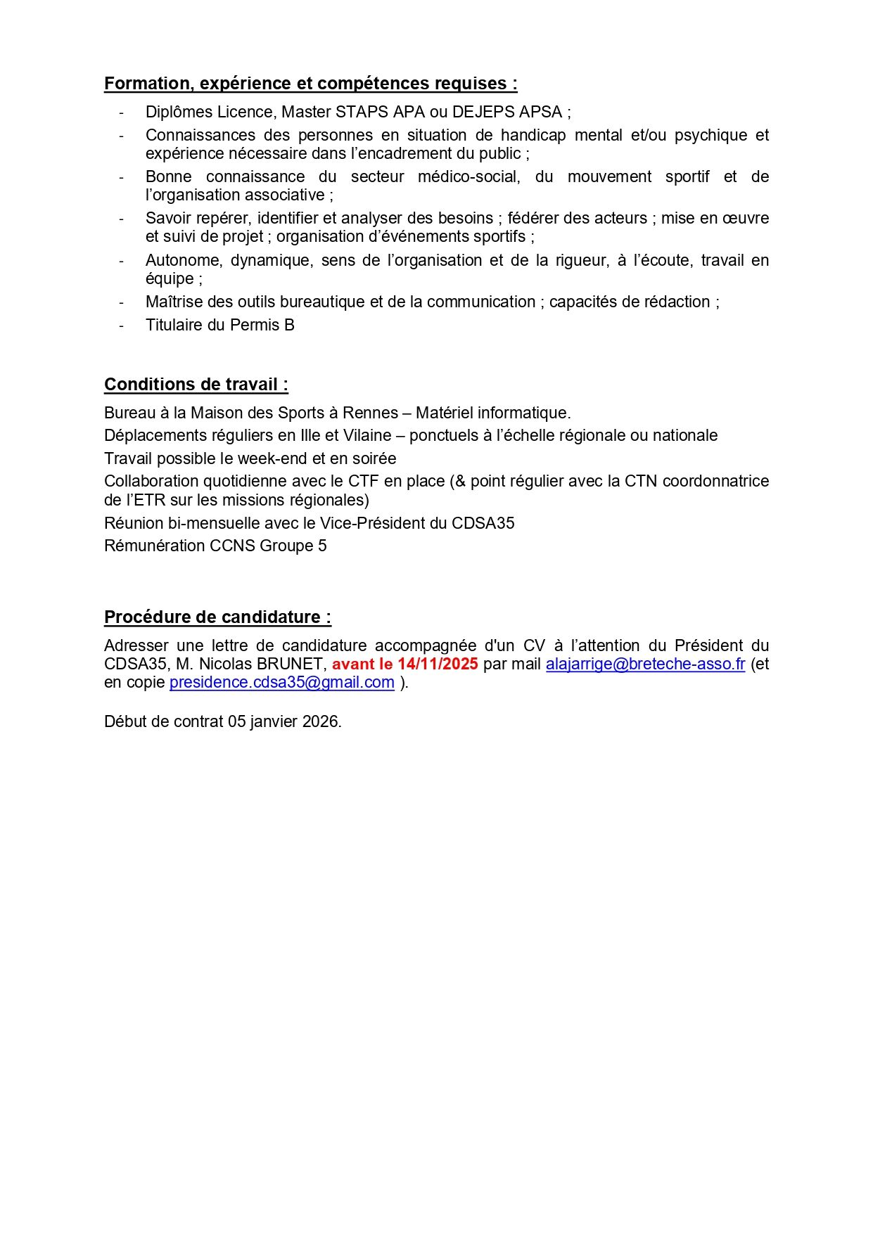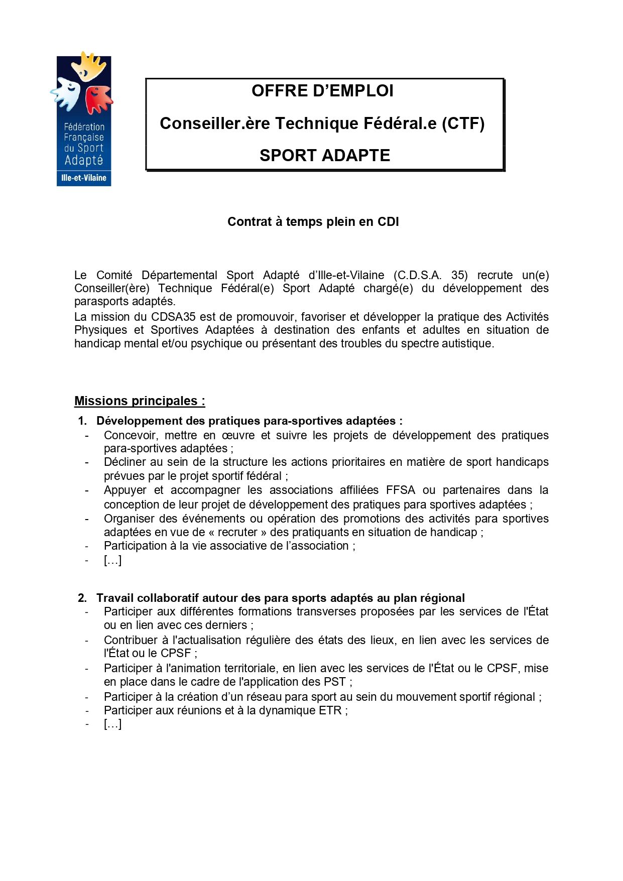 LE CDSA 35 recrute un(e) Conseiller(ère) Technique Fédéral(e) en CDI par AdminCdSa35 | Oct 30, 2025 | Uncategorized